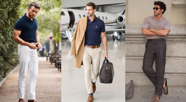 Phối cùng chinos màu khaki hoặc Jean ống rộng, Áo Polo trắng đen cổ đứng;